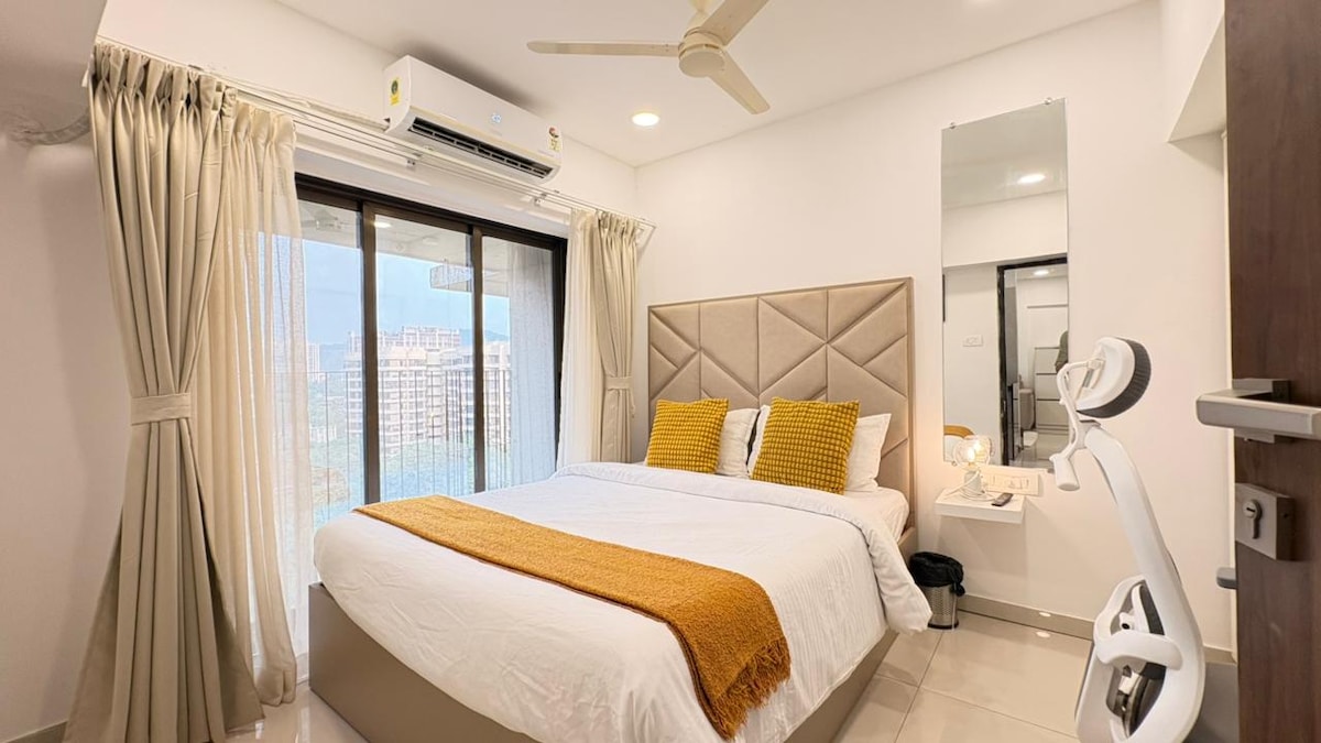Bienvenue dans votre appartement moderne et chic d'une chambre près de BKC! Avec son design minimaliste, son grand espace de travail, ses options de divertissement et ses commodités de base, il répond aux besoins des voyageurs d'affaires et de loisirs! Caractéristiques : ★ Grand bureau de travail Wi-Fi haut débit★ gratuit ★ Télévision connectée ★ Tata Sky avec toutes les chaînes HD Bar ★ de son ★ Four à micro-ondes/réfrigérateur Friteuse ★ à air comprimé ★ Purificateur d'air ★ Purificateur d'eau Réservez dès maintenant et découvrez le mélange parfait de modernité et de confort !