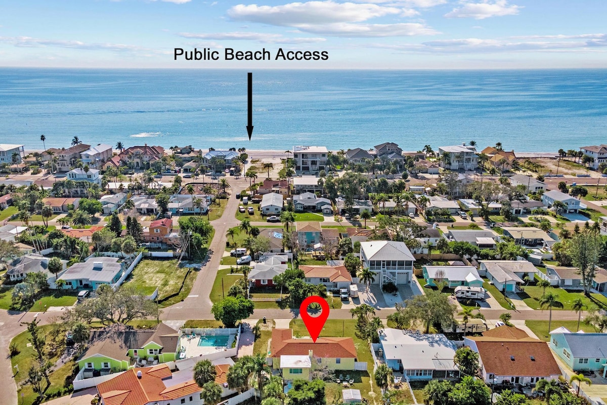 Il s'agit d'un bungalow de plage de 1951 avec toutes les améliorations, y compris une douche à l'italienne, de l'eau chaude à la demande et des appareils en acier inoxydable. Confortable, propre et confortable. Deux lits queen size et deux canapés-lits complets ! La plage se trouve à deux pas de Gulf Blvd et offre une vue sur des maisons, des jetées et des couchers de soleil à un million de dollars ! Superbe collection de coquillages. Emplacement fantastique avec beaucoup de choses à pied. L'épicerie, le magasin Dollar, les bars, les restaurants et le café sont tous accessibles à pied. À un peu moins de deux miles de John 's Pass.