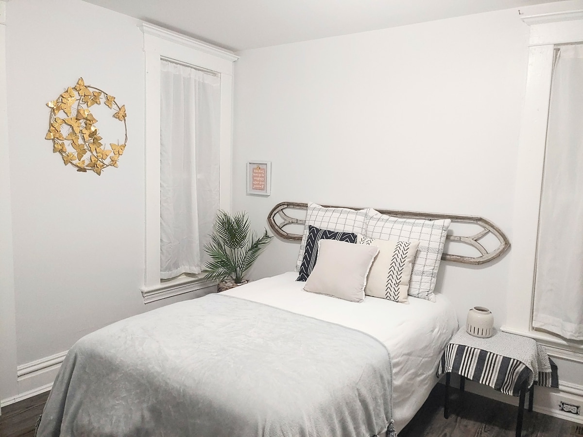 Note moyenne de 4,88 sur 5, 203 commentairesChambre Queen moderne près de l'aéroport et du centre-ville !