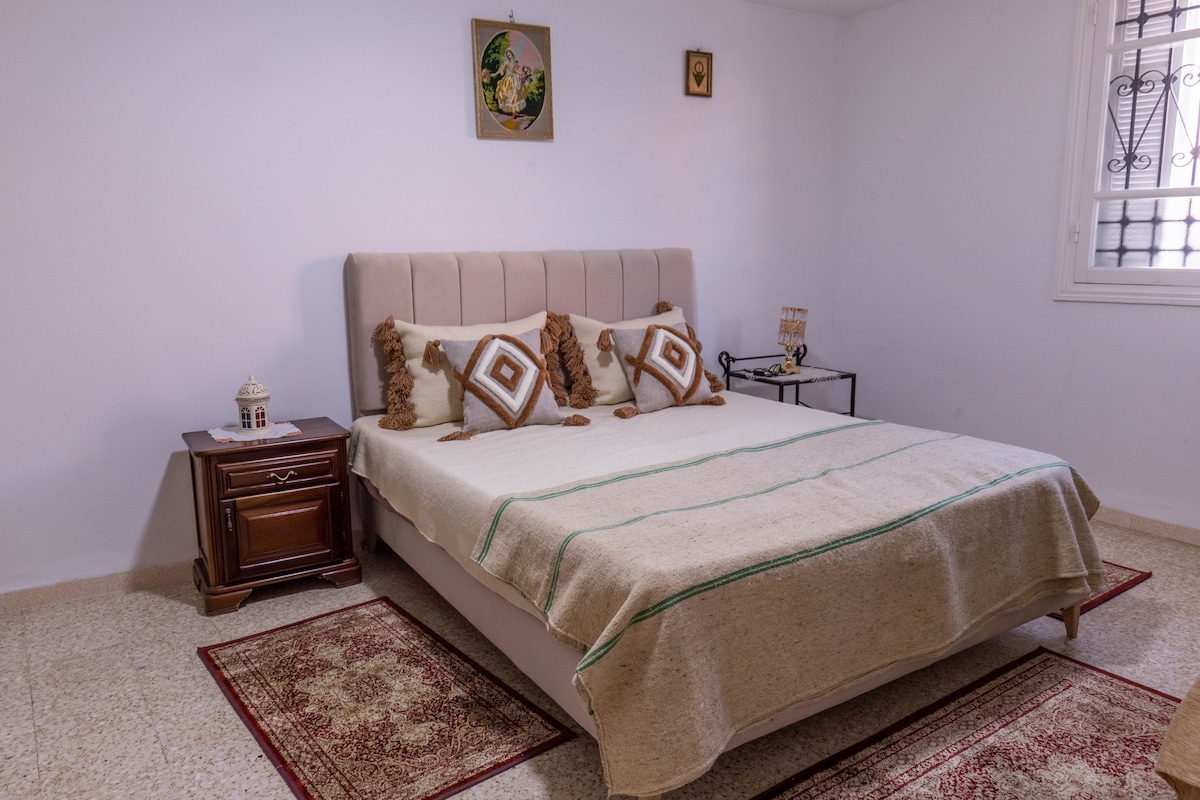 Un espace cozy idéalement situé à seulement 30 mètres de la magnifique plage. Notre logement, en plus d'offrir tout ce dont vous avez besoin pour un séjour merveilleux, se trouve au centre-ville, vous permettant ainsi de profiter facilement des attractions, des boutiques locales et de l'effervescence de cette ville côtière animée. Découvrez l'atmosphère unique de Mahdia depuis notre lieu de résidence central, où détente, divertissement et commodité se conjuguent pour une expérience inoubliable.