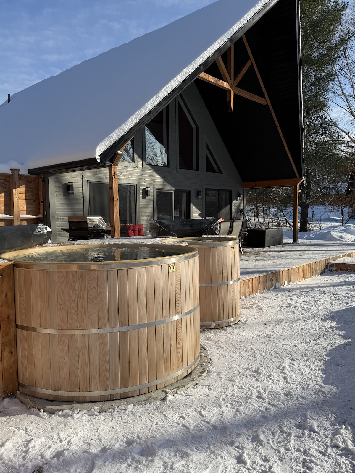 Chalet de luxe 4 saisons en bord de rivière, avec spa nordique privé, à 1 h 30 d’Ottawa et 4 h30 de Toronto. Profitez du spa en cèdre, du bassin froid, puis de soirées cinéma au coin du foyer avec téléviseur 60 po et système audio de style cinéma. Peut accueillir 8 personnes avec 3 chambres, 2 salles de bain, Wi-Fi rapide, deux espaces de travail et une baignoire profonde. Vues hivernales sur la rivière et soirées au coin du feu, incluant foyer extérieur au propane et feux de camp — bois fourni.