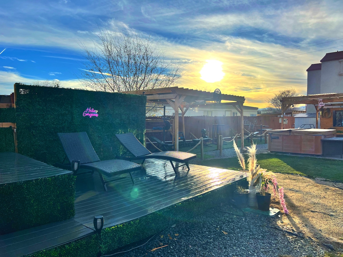 Allez-y doucement pour cette escapade unique et tranquille. Récemment rénové, spacieux, confortable, paisible et calme, 3 chambres, 2 salles de bain, entièrement approvisionné, maison de plain-pied. Le jardin est parfait pour se divertir avec une cuisine extérieure, une fosse en fer à cheval, de belles vues, un éclairage au coucher du soleil et une intimité totale sans voisins. À proximité du centre-ville de Reno, des écoles, de la nature, des sentiers de randonnée accessibles à l'extérieur, des stations balnéaires à 45 minutes.
