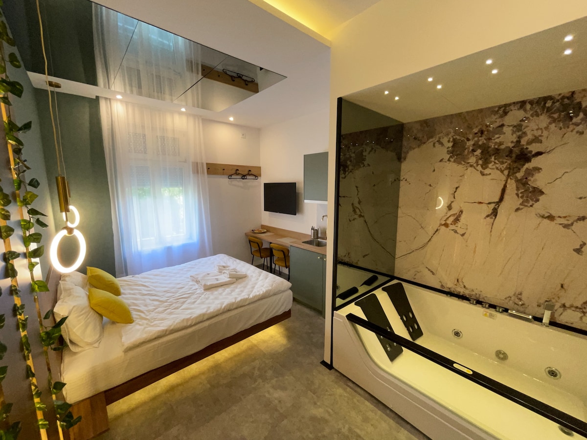 Présentation d'un nouvel appartement luxueusement meublé situé à Vračar au cœur de Belgrade. L'appartement est décoré de manière unique, avec un grand salon et une chambre. Ainsi qu'un espace spa qui contient un jacuzzi (jacuzzi) et un sauna finlandais. Appartement équipé d'une connexion Internet wi-fi rapide, de téléviseurs intelligents LED, d'une télévision par câble HD avec plus de 200 chaînes nationales et étrangères. Le prix à la nuit comprend une place de parking dans le garage, accessible directement à l'appartement.