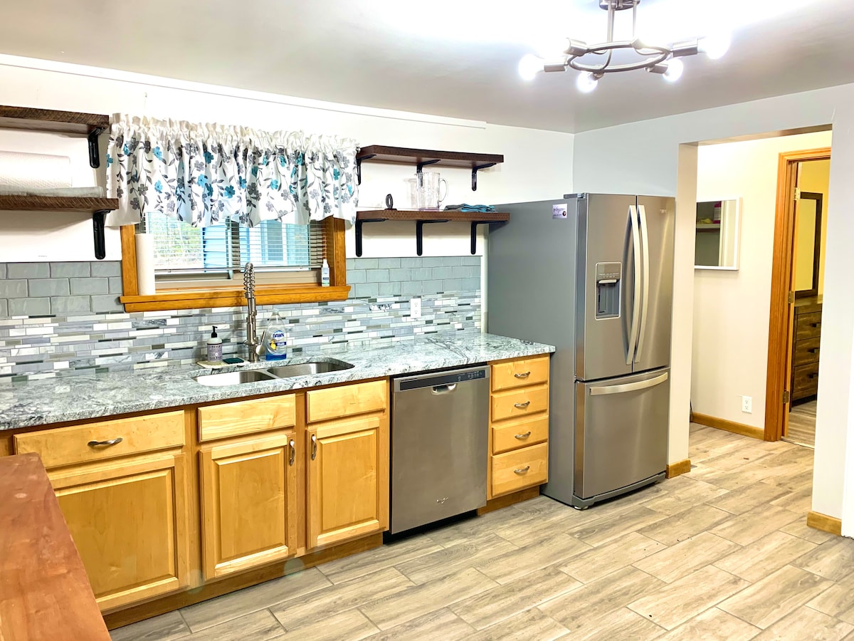 Oubliez vos soucis dans ce chalet spacieux et serein récemment rénové sur 13 acres de paradis. Une vue magnifique sur la vie sauvage! Que vous vous réunissiez en famille, que vous partiez en week-end pour la chasse, la pêche ou la motoneige ou que vous soyez simplement de passage, nous avons tout ce dont vous avez besoin. Cuisine entièrement équipée, beaucoup d'espace de couchage, espace pour se détendre et regarder un film ou jouer aux cartes. Nous avons tout ce dont vous avez besoin pour les bébés et les tout-petits. À quelques minutes seulement des sentiers de VTT, des lacs et de la plage!