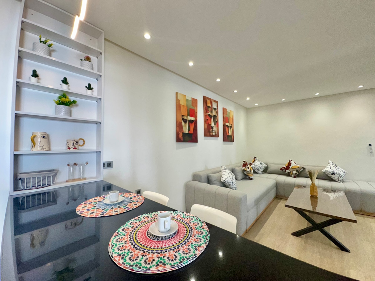 Experience luxury in the heart of the Moroccan capital! This refined space features cozy nooks, a comfortable bed, a fully-equipped kitchen, and free WiFi. It has everything you need for a comfortable stay. This modern apartment is located in the upscale Agdal district, close to the Sofitel Hotel, Descartes School, and Ibn Sina Forest. Conveniently located, the flat is few steps away from the main street, full of shops, cafes, and restaurants. It's only 10 minute-drive from the Medina.