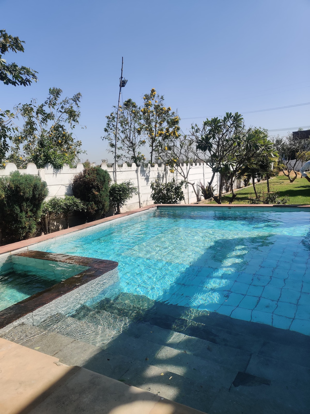 Bienvenue à Nimboli Farms, votre escapade sereine et luxueuse à seulement 40 minutes de Gurgaon. Conçu par deux voyageurs passionnés, c'est là que la nature rencontre le confort. Imaginez des espaces verts tentaculaires, une piscine privée à ciel ouvert et des chambres aérées qui vous détendent instantanément. Avec trois chambres élégantes, deux entrées spacieuses et de la place pour jusqu'à 15 voyageurs, c'est parfait pour les réunions de famille ou les célébrations joyeuses. Évadez-vous de la ville, respirez profondément et créez des souvenirs qui restent.