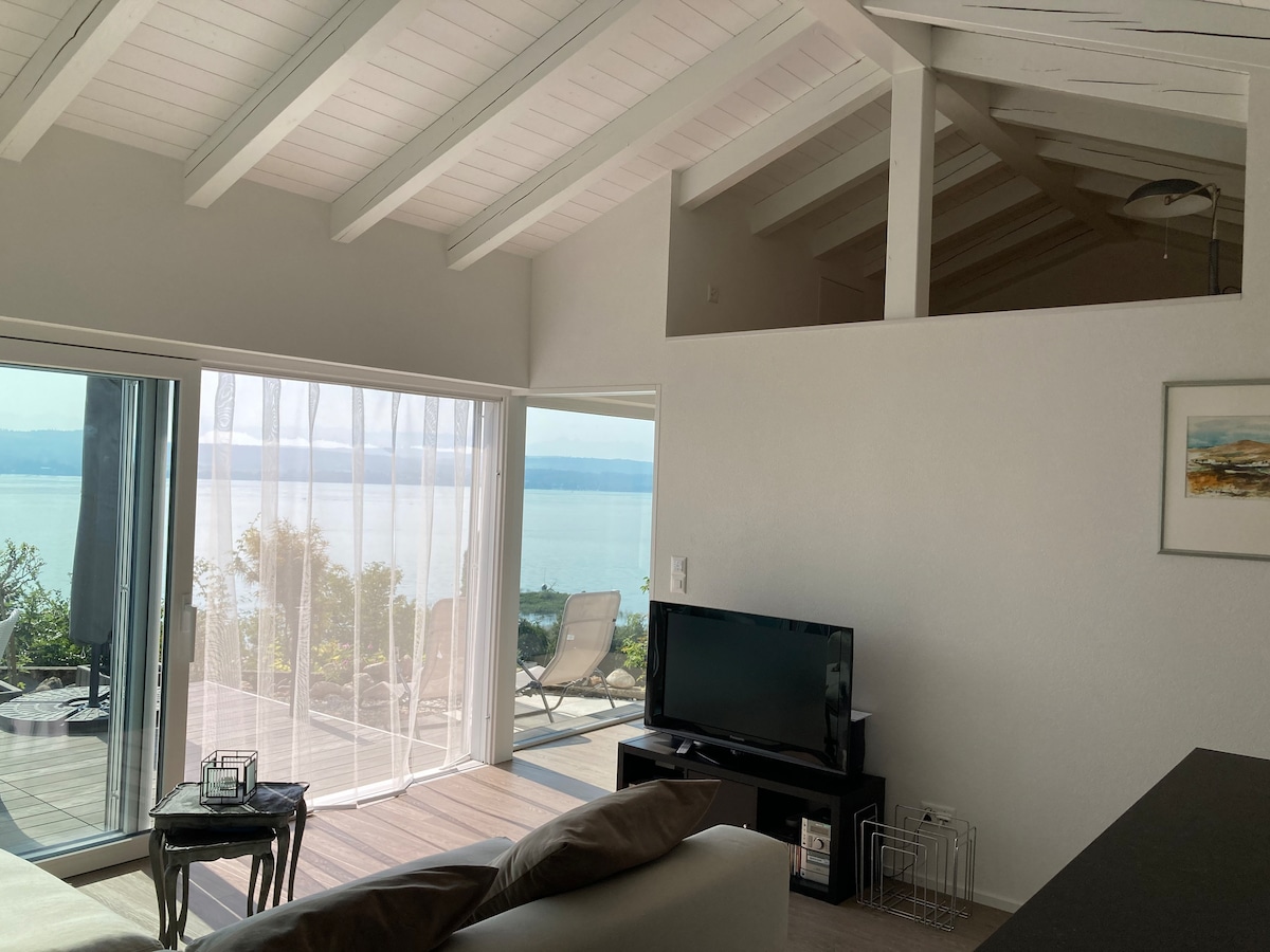 Situation au sud directement sur le lac * Vue panoramique depuis le salon * Vue imprenable sur l'eau * Cuisine ouverte avec de nouveaux appareils * TV avec 4K Ultra HD * Cheminée * Baignoire * Lave-vaisselle, micro-ondes, lave-linge, sèche-linge * adapté aux enfants * nouveaux matelas de haute qualité * couettes en duvet * beaucoup d'amour pour le détail * Possibilités de randonnée et parc animalier à proximité * merveilleux en hiver comme en été par tous les temps * Réflexions de lumière et reflets du soleil sur les vagues * un endroit pour recharger les batteries