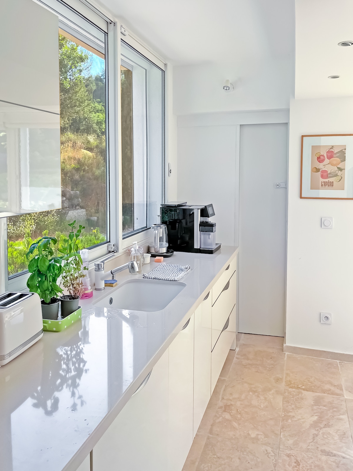 La magnifique suite Fitz-James vous attend pour un séjour d’exception en Provence. Cette luxueuse suite moderne se situe dans un château du 17e au pied de la sainte Victoire, près d’Aix. Cette élégante suite de 170 m² se compose d’une vaste salle à vivre, avec hauteur sous plafond, d’une cuisine ouverte moderne complètement équipée, d’un spacieux salon comprenant un canapé-lit de qualité. Ainsi que d'une belle chambre avec cheminée et lit king-size, et une charmante salle de bain originale.