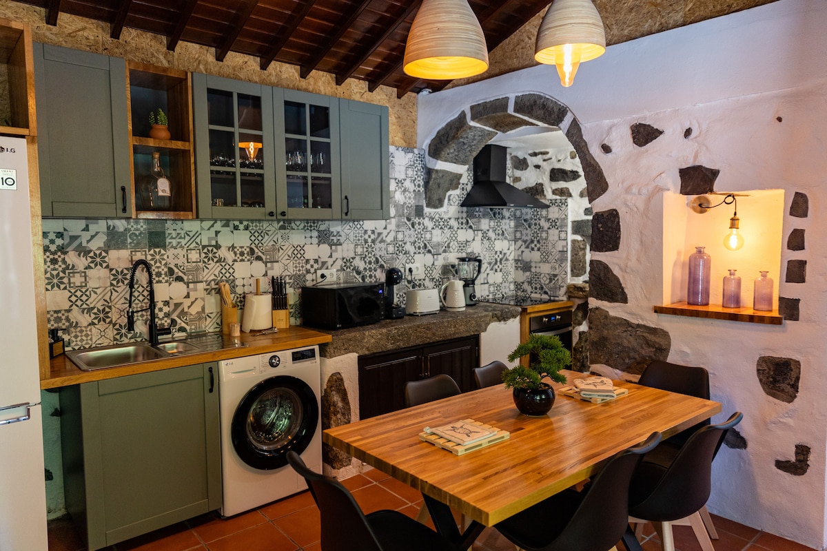 Bienvenue à Castanheiro. Notre propriété est une maison récemment rénovée construite autour d'un châtaignier centenaire. Une terrasse spacieuse offre une vue panoramique sur la baie de Santa Cruz. Elle est idéalement située à Lagoa et à moins de 3 minutes à pied de l'océan. Une promenade vers les piscines naturelles vous prendra 10 min. La maison a été restaurée avec amour pour conserver ses caractéristiques d'origine en pierre. C'est l'endroit idéal pour passer du temps en famille ou entre amis car il peut accueillir confortablement jusqu'à 6 personnes.