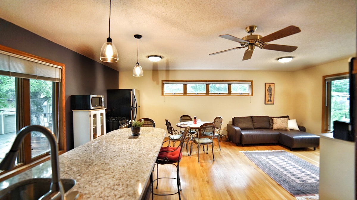 Évadez-vous avec l’escapade parfaite à Minneapolis! Idéalement situé dans le sud de Minneapolis, ce logement vous permet d’être à quelques minutes seulement des principales attractions de la ville. 🏈 US Bank Stadium – 10,6 km, 🌆 Centre-ville de Minneapolis – 12,4 km, ✈️ Aéroport international de Minneapolis-Saint-Paul – 13,4 km et 🛍 Mall of America – 10 km. Profitez d’un hébergement confortable, d’une connexion Wi-Fi rapide et d’un espace relaxant conçu pour les familles, les groupes et les voyageurs d’affaires. Ne nous croyez pas sur parole : consultez nos évaluations 5 étoiles et découvrez pourquoi les voyageurs aiment séjourner chez nous.