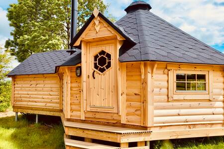 Cabane privée située sur une île sur son propre lac, l'endroit idéal pour séjourner en pleine nature et se détendre dans 10 acres. Meubles construits à partir d'arbres locaux pour une finition rustique magnifiquement conçue. Balancez-vous dans un hamac ou un fauteuil œuf et laissez-vous tenter par un peu d'observation des étoiles. Observez la faune environnante près du poêle à bois ou rassemblez-vous près du foyer. Dirigez-vous vers Exmoor ou Dartmoor et profitez des nombreuses promenades/balades à vélo ; surfez ou explorez les plages. Aidez à nourrir les animaux et détendez-vous, rechargez vos batteries et reconnectez-vous !