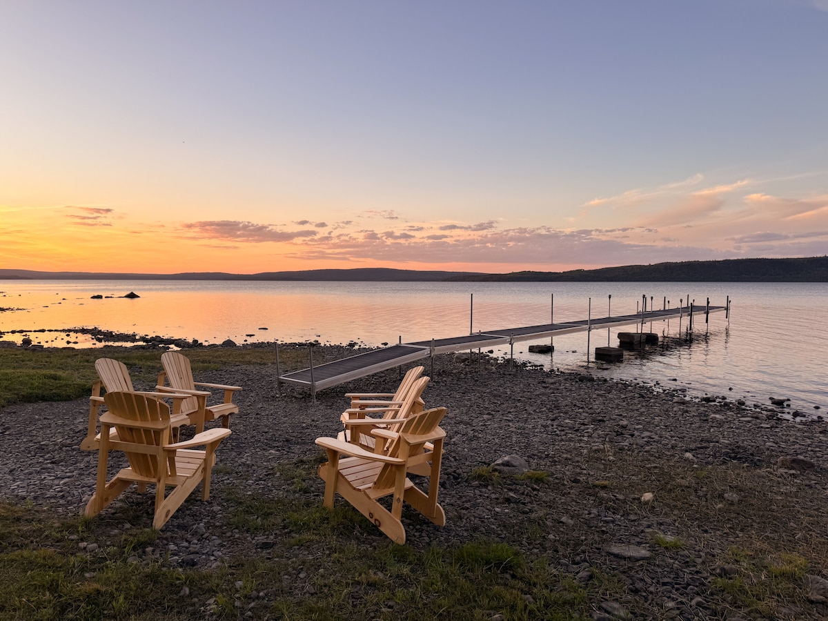 Retraite au bord du lac · Foyer extérieur, barbecue, quai et véranda
