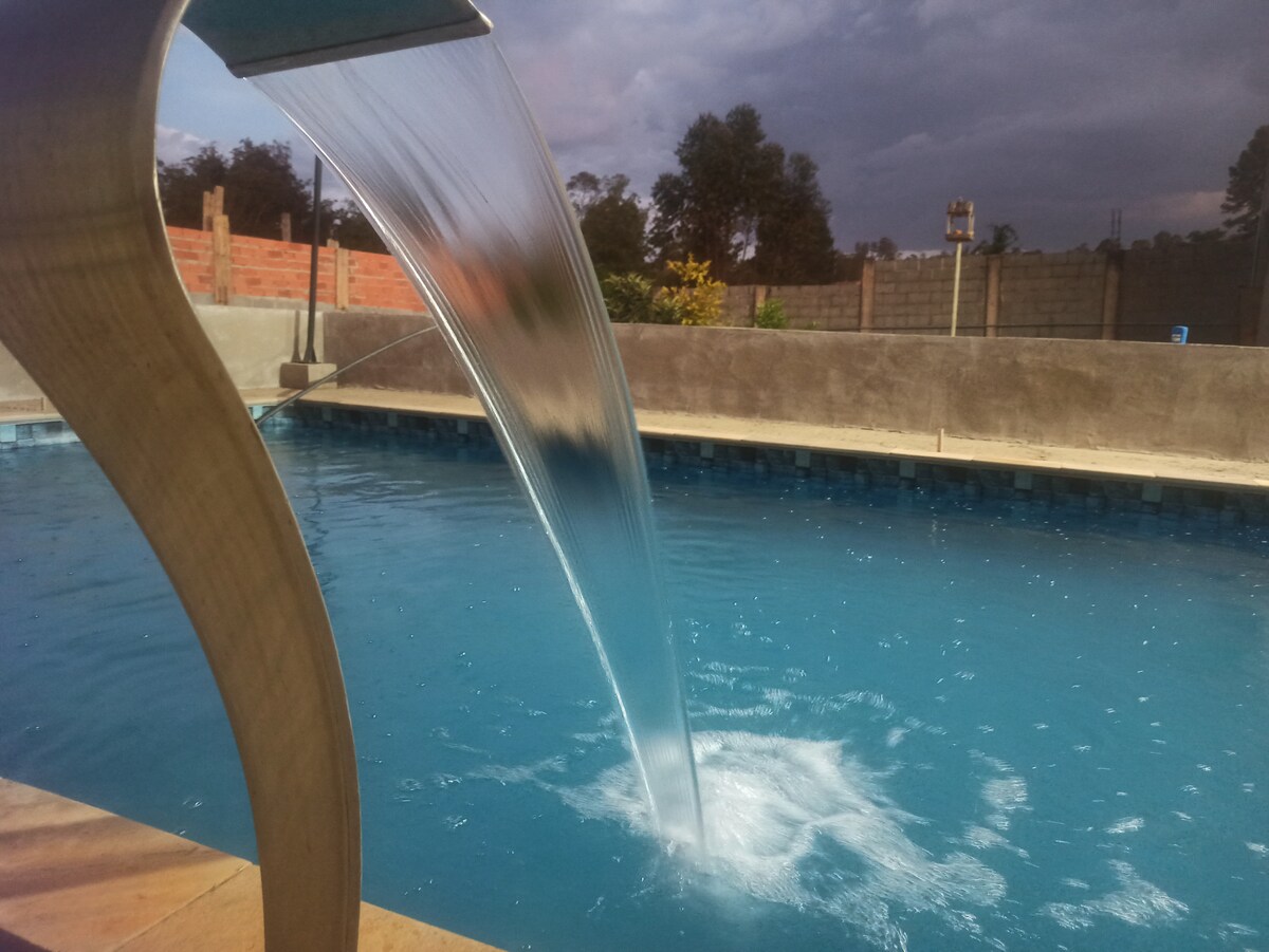 La ferme est merveilleuse, à l'intérieur d'une communauté fermée, patio entier, avec un espace barbecue et une piscine intégrée avec tout l'espace ! Vc et votre famille seront bien accueillis et ne manqueront pas de passer des moments uniques ! Ah et nous sommes à 40 km du parc Thermas ! Il est donc proche et tb sera en sécurité chez nous.
