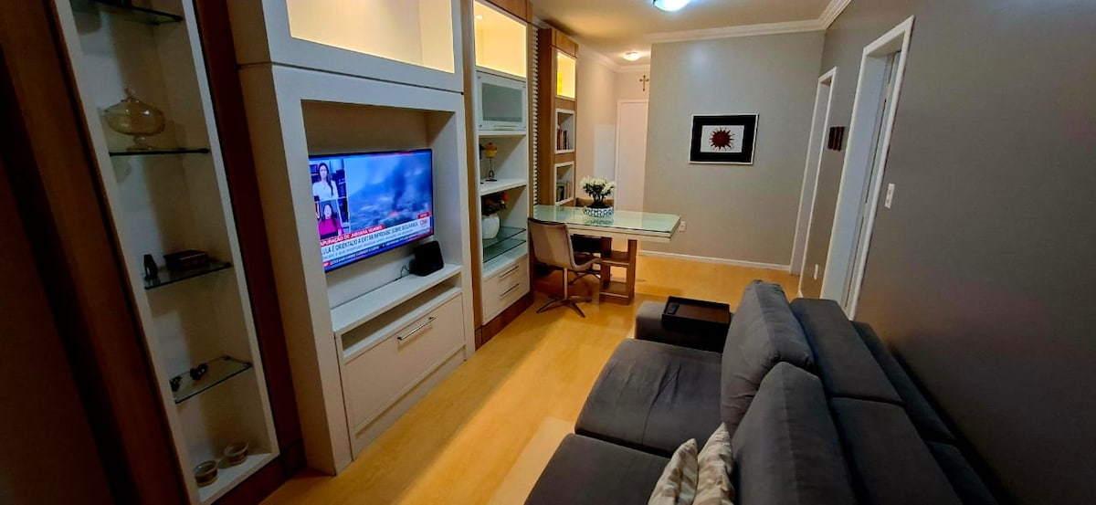 Appartement de charme et bien situé, où vous aurez du confort et une vue sur les montagnes. Toutes les pièces ont des tableaux, des plantes et des objets affectifs, ce qui en fait un coin unique. En outre, la copropriété dispose d'une concierge 24h/24, d'une salle de sport, d'une salle de réunion et d'étude, d'un terrain de football, etc. Idéal pour ceux qui viennent pour le travail et les loisirs. Il est proche de l'UFSC, de l'UDESC, du Shopping Floripa, de la Villa Romana et de Beira Mar, de la Lagoa da Conceição et des plages aussi. Ici tout le monde est le bienvenu 🏳️🌈🧩♾️