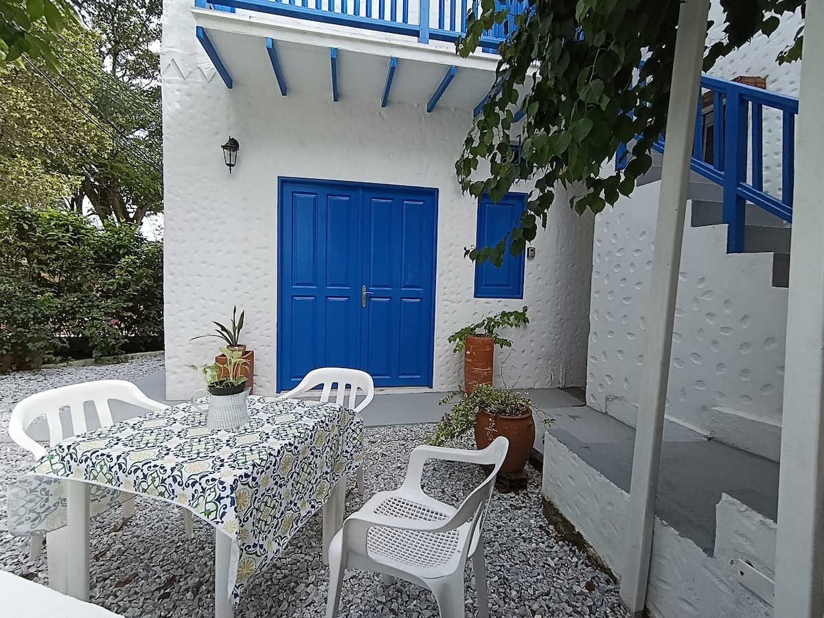 Hermosa casa mediterránea con terraza en el Santorini Colombiano Doradal, 2.5km de la Hacienda Nápoles, 20 minutos de reserva Natural Rio Claro, cerca al terminal de buses, restaurantes, supermercado y farmacias. La casa es ideal para familias y grupos de amigos. Cuenta con aire acondicionado y ventiladores en todos los espacios, 2 habitaciones, 2 baños, comedor y cocina dotada, lavadora. 2 camas dobles, 1 camas sencillas y un sofá cama doble en la sala y tv (capacidad 7 personas).