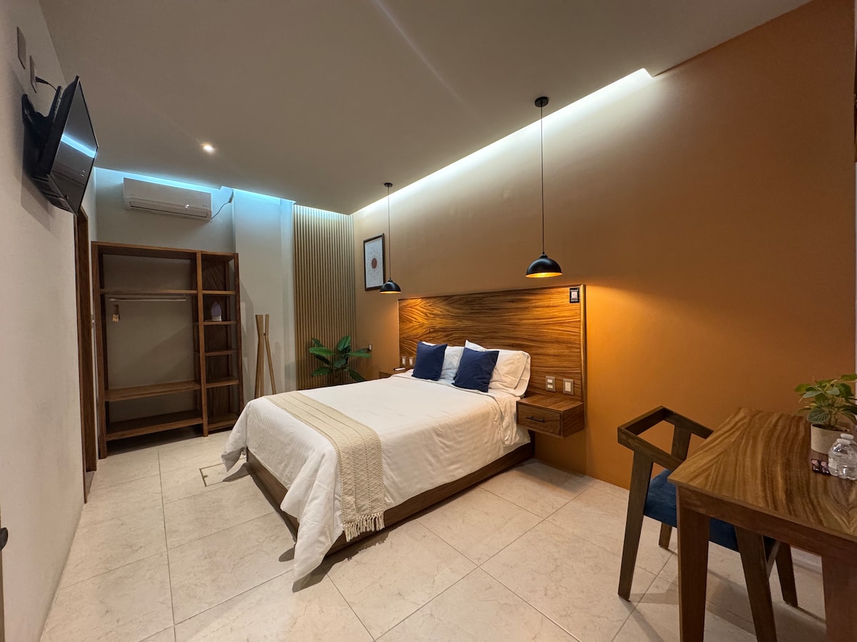 Suite privée et rénovée en 2021, à l'intérieur d'un bâtiment (2ème niveau) au cœur de la zone commerciale de la ville. Avec salle de bain privée. Quartier commerçant et sûr. Il n'y a pas de parking, mais vous pouvez vous garer sans problème dans la rue. Situé dans la rue principale (bruit). Entrée et arrivée automatiques. POINTS D'INTÉRÊT PROCHES : • Marché local • Pharmacie/super 24 h/24 • Banques ATM • Restaurants, cafés et bars • Gare routière ADO Le centre-ville est à 1 km.
