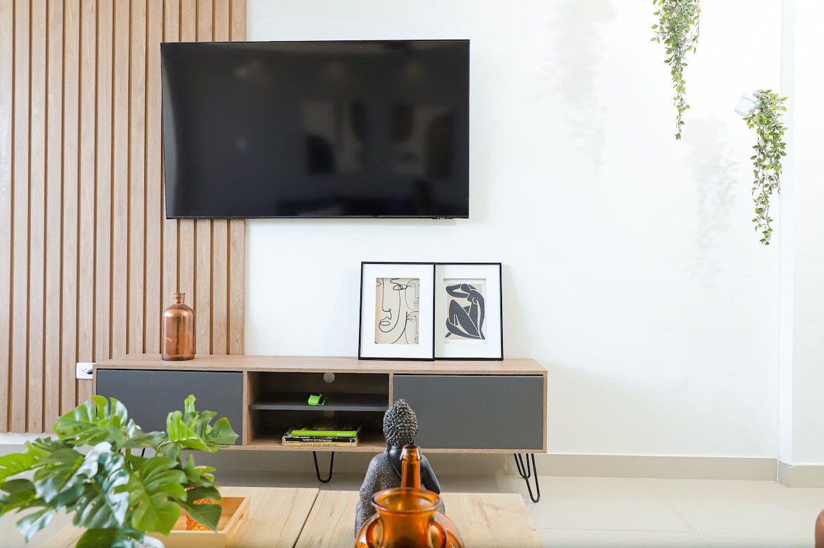 💫 Élégant et relaxant près du centre commercial Mayales 🧘 🛋️ Salon : meublé, grande télévision, Wi-Fi haut débit et balcon avec vue sur la montagne 🏔️ 🍽️ Cuisine : entièrement équipée avec un bar à déjeuner, un réfrigérateur et un mélangeur. 💦 Linge : lave-linge dans l'unité. 3 chambres (toutes avec climatisation ❄️) : 🛌 Principale : lit double, télévision, placard et salle de bain privée. 🛌 Secondaire : deux chambres avec lits doubles et placards. 🚿 Salle de bain pour les voyageurs dans le couloir. Le mélange parfait de confort et de style !