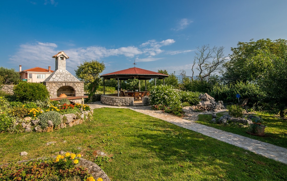 Notre maison est située à Čižići, à environ 50 mètres de la plage. La propriété bénéficie d'un emplacement calme et isolé avec un parking ombragé sur place. L'appartement dispose d'une entrée/balcon privé et d'une grande terrasse avec de belles vues sur la mer et le jardin. À l'intérieur, il y a une chambre avec un lit Queen Size, une salle de bain avec douche, une cuisine/salle à manger et un salon avec un canapé gigogne. À l'arrière de la maison, nous avons une salle à manger commune et un espace barbecue et une douche extérieure pour en profiter.