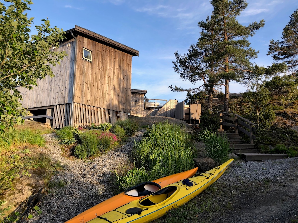 Båtbu ved sjøen. Kajakker inkludert juni-september