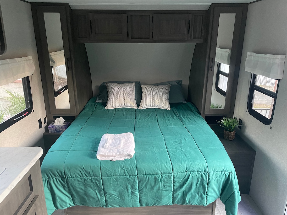 Offrez à vos proches une escapade paisible dans ce camping-car confortable, à seulement 2 minutes du casino Pechanga et à 7 minutes de la vieille ville de Temecula. Entouré de vues sur la montagne, ce refuge romantique dispose d'un patio privé avec un barbecue et des sièges extérieurs, parfait pour les dîners au coucher du soleil et le café du matin. Profitez du charme tranquille de la campagne tout en étant à proximité des meilleurs établissements vinicoles, restaurants et divertissements. Animaux acceptés, confortable et conçu pour les couples qui cherchent à se détendre, à se rapprocher et à profiter de la nature.