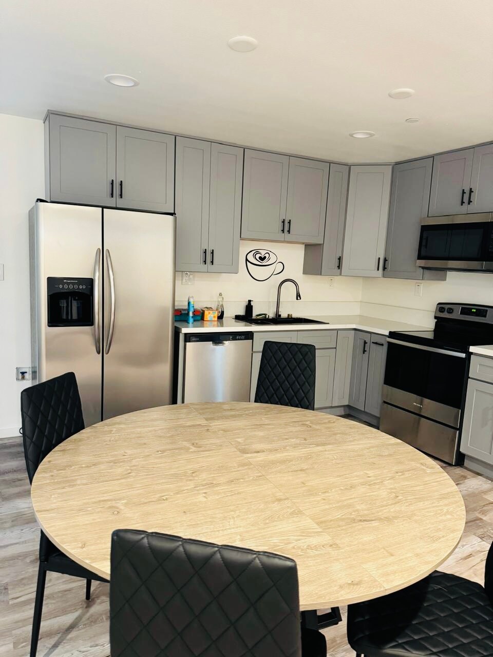 Cet appartement privé élégant est parfait pour une famille de 4 personnes avec un lit Queen Size, un matelas gonflable confortable, une cuisine complète avec une cuisinière à double four GE et une table de cuisson à 5 feux, des casseroles et des poêles, une table de salle à manger, un canapé confortable et une télévision de 54 pouces. Piscine extérieure partagée. Nous gardons l'appartement impeccable et le désinfectons après chaque séjour. Lave-linge à chargement frontal et sèche-linge sur place. Vaisselle et couverts, café et thé, eau en bouteille. Chaque drap et serviette est fraîchement lavé avec un détergent non allergène, du bicarbonate de soude et du vinaigre.