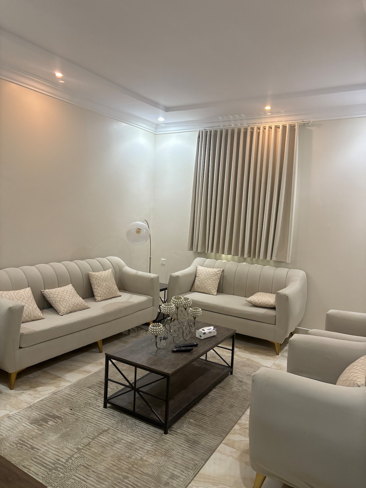 Un appartement moderne conçu pour un séjour exceptionnel, situé dans l'un des plus beaux quartiers de Riyad avec une vue imprenable sur KAFD. Il dispose d'un coin salon extérieur avec un écran et un projecteur pour des soirées agréables. Pour votre confort, le lit comprend une couche supplémentaire de 14 cm de haute qualité. « Nous proposons également des services de coordination d'événements pour des occasions spéciales (y compris des gâteaux et des accessoires) moyennant des frais supplémentaires et sur réservation préalable, pour une expérience inoubliable. »