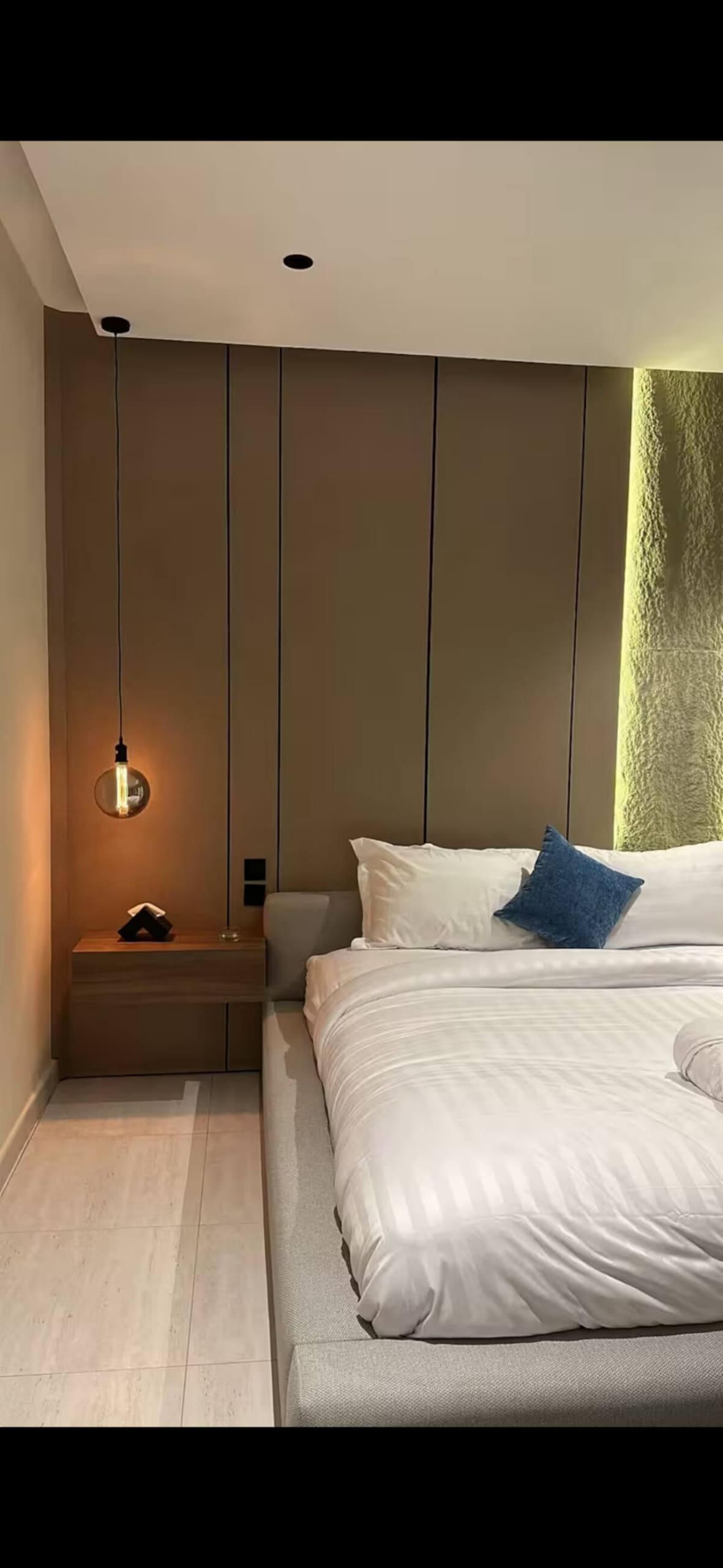 Appartement confortable et luxueux conçu par l'architecte Khaled, situé près du boulevard et à proximité du centre financier (KAFD). Le foyer simulé ajoute une ambiance chaleureuse et accueillante. Comprend une chambre avec un coin salon confortable, un élégant dressing avec un meuble de maquillage au design unique et une armoire spacieuse. L'appartement bénéficie d'un design sophistiqué et confortable, parfait pour la vie moderne.