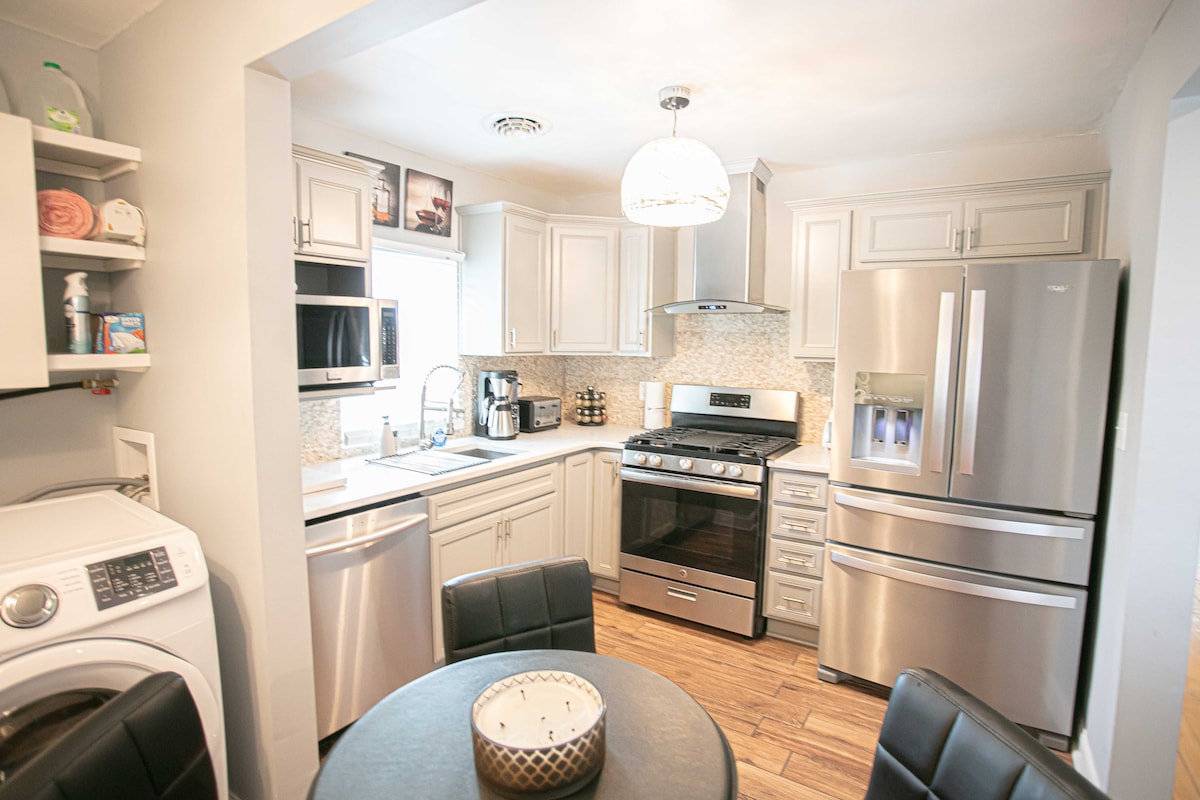 Cette maison se trouve sur une colline privée, située en plein centre-ville de Roanoke, à 1 minute en voiture de n'importe quel endroit du centre-ville, à 10 minutes à pied ou à 4,80 $ en Uber ! Profitez du fait d'être la seule maison de la région disposant de son propre parking privé. La maison peut accueillir 4 personnes. Tout a été ENTIÈREMENT éventré et rénové de fond en comble. Salle de bain neuve, sol de style industriel, chauffe-eau sans réservoir (eau chaude illimitée, prenez une douche aussi longue que nécessaire). La cuisine dispose d'appareils électroménagers en acier inoxydable neufs.