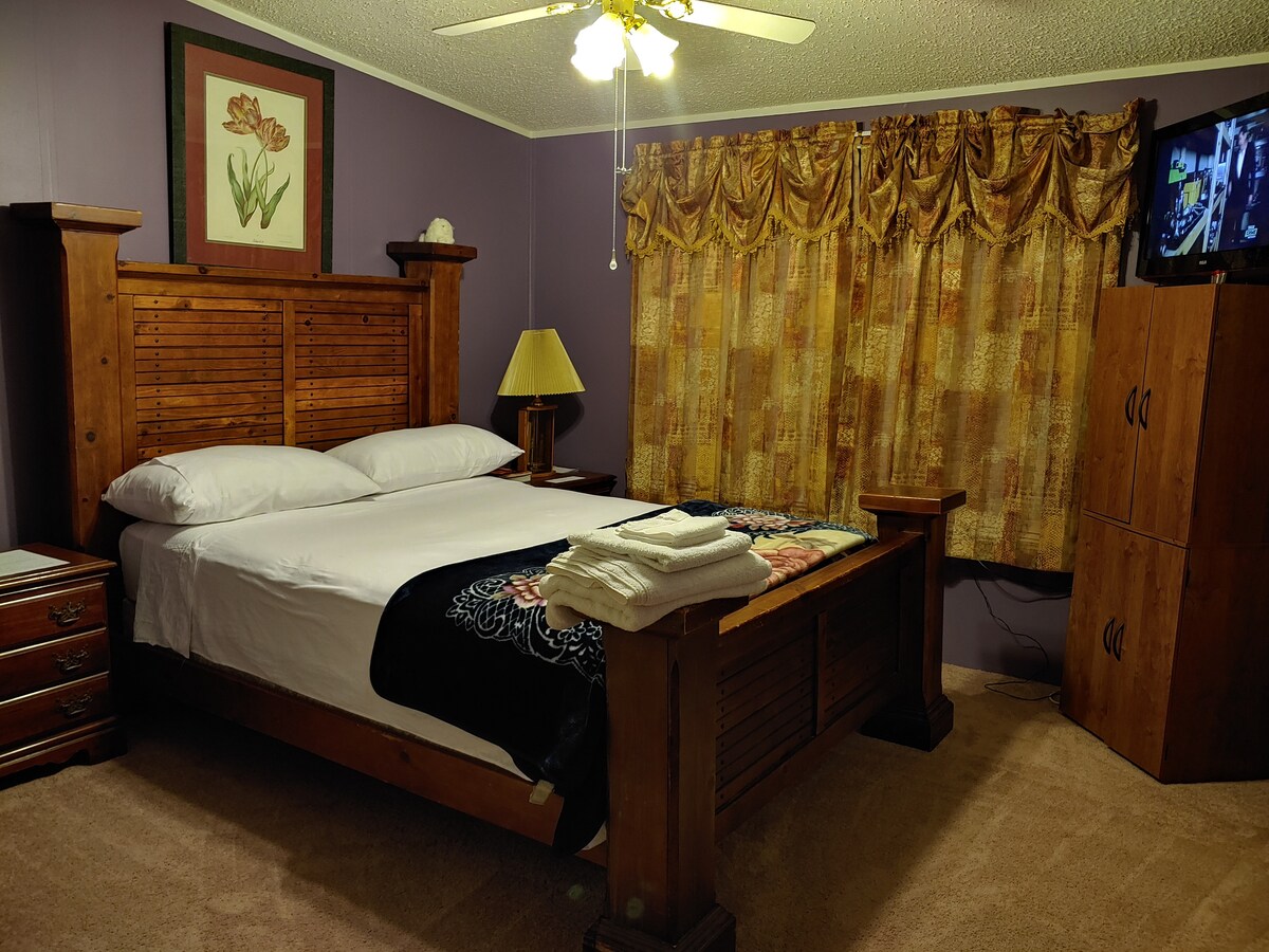 Recharge gratuite pour les véhicules électriques Niveau 1 Prise de courant de 110 volts uniquement Charmant chalet sur la ferme familiale de 50 acres. Cette maison confortable et entièrement rénovée dispose de deux chambres accueillantes (Queen et Twin) et d'une salle de bain bien aménagée. Détendez-vous sur le porche spacieux, en admirant la vue sereine sur le champ de foin ouvert et les couchers de soleil à couper le souffle. Idéal pour les professionnels en déplacement qui aiment la propreté et l'ordre. Taille idéale pour deux adultes et un enfant. Trois personnes maximum. Adapté aux familles Que Dieu vous bénisse, vous et l'Amérique