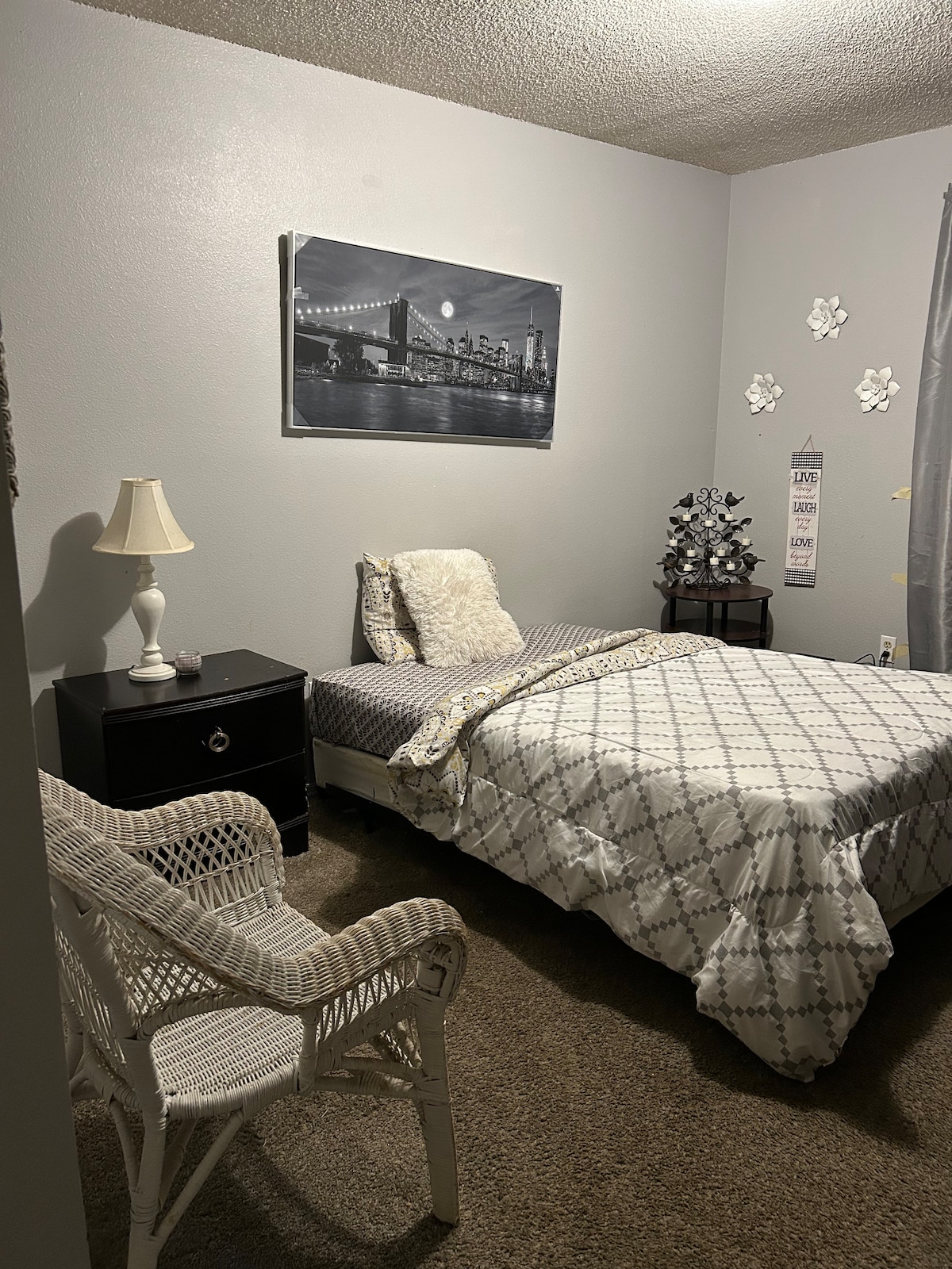 Mini espace que j'ai créé dans une petite chambre confortable,, abordable et est proche de la cuisine et de la machine à laver et de la sèche-linge ! La chambre est à distance de marche du magasin, du restaurant et de l'arrêt de bus Marta ! Capacité d'accueil pour son prix et sa salle de bain partagée !