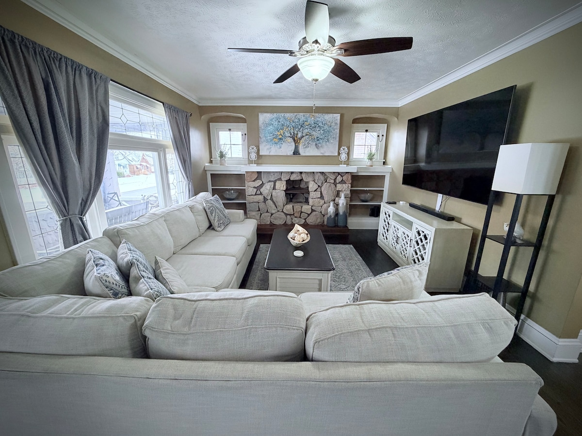Enjoy a spotless, stylish lakeside apartment in a quiet, charming neighborhood just steps from beautiful Edgewater Park and the beach, restaurants, and local favorites. Guests and pets love the bright, spacious living room, comfortable beds, fenced-in backyard and walkable location. Perfect for couples, friends, or longer stays, the apartment is thoughtfully equipped for anything from a weekend getaway to several months in Cleveland.
