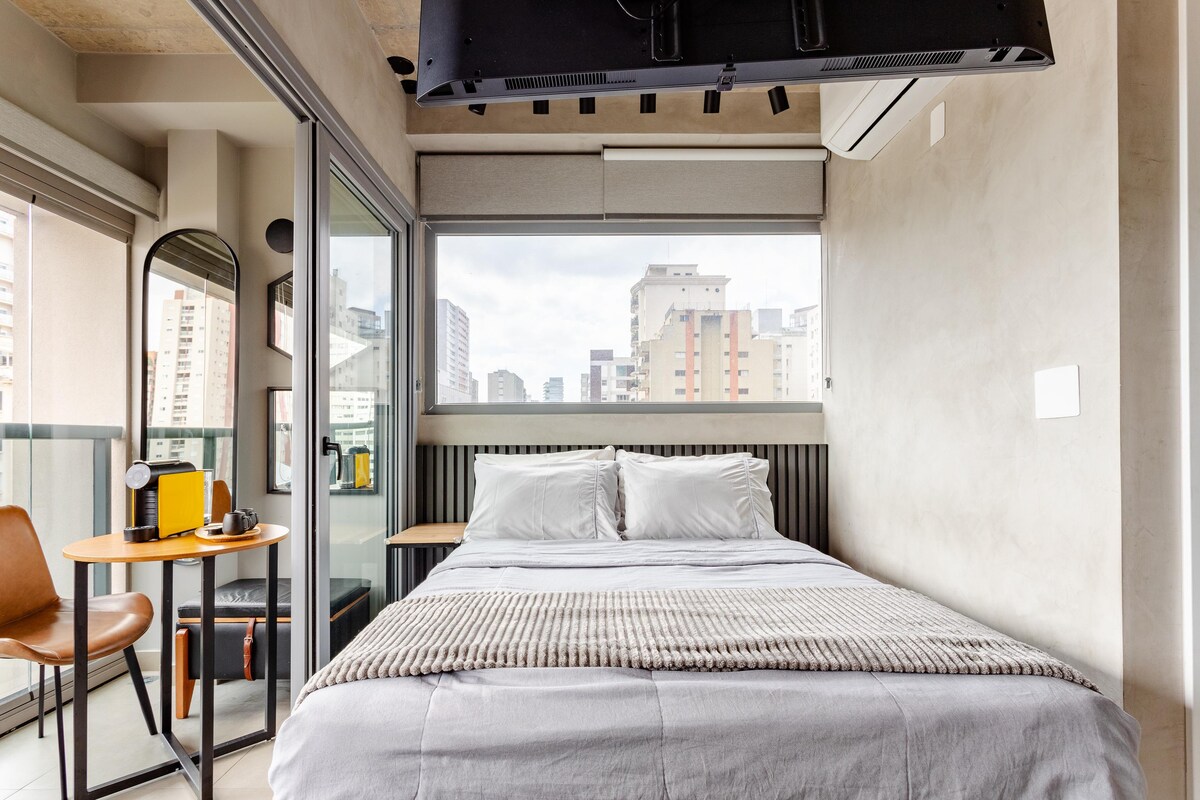 Appartement élégant de 50 m² situé à Bela Vista, avec portier 24h/24. 2 chambres (une seule avec climatisation et lit queen size, la seconde est assez petite et peut être utilisée comme bureau, avec un canapé-lit double) et 1 salle de bain. Avec des vues incroyables de chaque fenêtre, c'est un endroit idéal pour travailler et se détendre. Le jet-tube privé sur le balcon est un endroit fantastique pour profiter de la vue sur la ville. Idéal pour les couples, les professionnels ou les petites familles à la recherche de confort, de commodité et de l'une des meilleures vues de la ville.