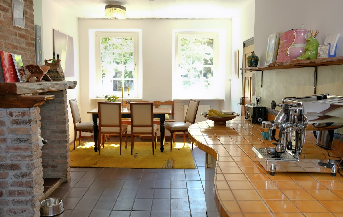 Notre « petite maison » est située directement à l'orée de la forêt derrière notre maison d'habitation, dans le cadre d'une ancienne cour de moulin ! Nous sommes à 1 kilomètre du voisin et le supermarché le plus proche est à 6 kilomètres. Il ne s'agit pas d'une auberge de luxe, mais si vous recherchez le calme absolu et un paradis de randonnée au milieu de la plus belle nature, vous êtes au bon endroit! Pendant la saison froide, le chauffage DOIT également être assuré par la cheminée! CEUX QUI CHERCHENT PLUS DE CONFORT, REGARDEZ MON AUTRE ANNONCE!
