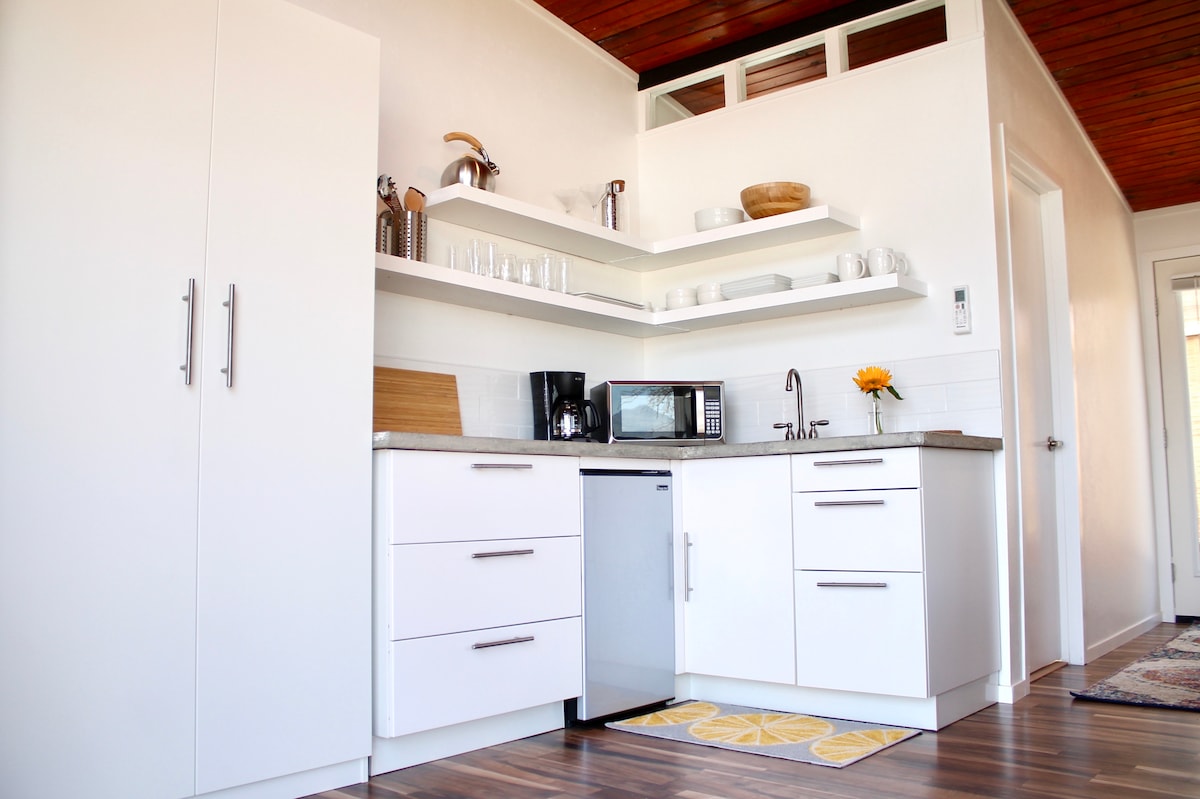 Située à flanc de colline à Shady Cove. Il s'agit d'une toute nouvelle micro-maison spacieuse de 300 pieds carrés. La micro-maison est située sur notre propriété privée. Nous demandons à nos voyageurs d'être respectueux de notre maison, de nos voisins et de l'environnement. Il est important que nos voyageurs traitent l'espace extérieur comme s'ils campaient et ne laissent aucun aliment à l'extérieur car il y a de la faune dans la région. Inclus est un belvédère couvert avec des rideaux sur une terrasse privée avec un spa et un foyer à gaz qui réchauffe également vos jambes.
