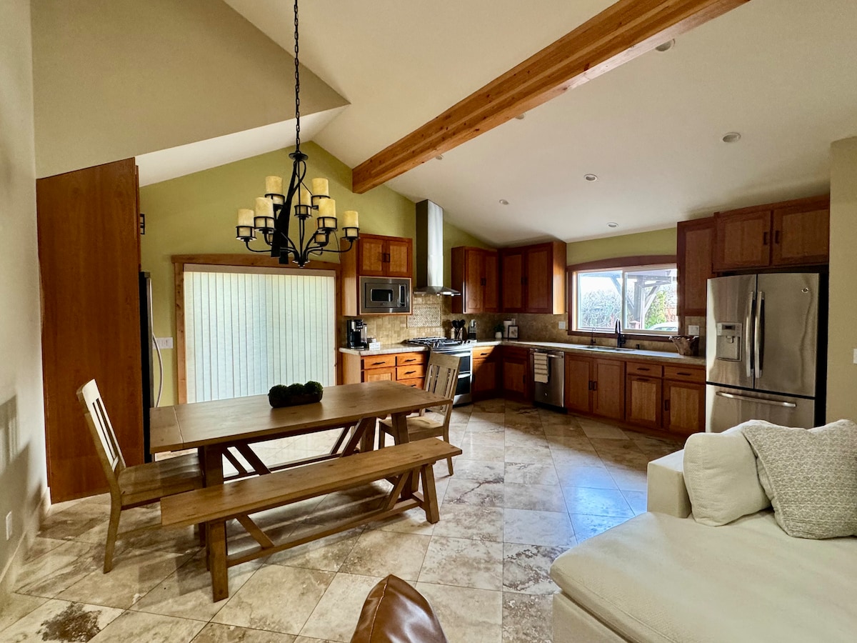 Votre retraite dans le pays du vin vous attend. Cette magnifique maison dispose d'une nouvelle cuisine moderne, d'un coin salon extérieur, d'un lave-linge et d'un sèche-linge, d'une connexion Wi-Fi gratuite et d'un parking. Cette maison est idéalement située au cœur de la région viticole, à quelques minutes des vignobles de Sonoma, des brasseries, de l'aéroport du comté de Sonoma, du centre-ville de Santa Rosa, du centre-ville de Sebastopol et de grands restaurants. En raison de la COVID, nous nettoyons et désinfectons soigneusement la maison avant et après chaque séjour. Bienvenue chez vous, loin de chez vous !! Votre concierge Ana