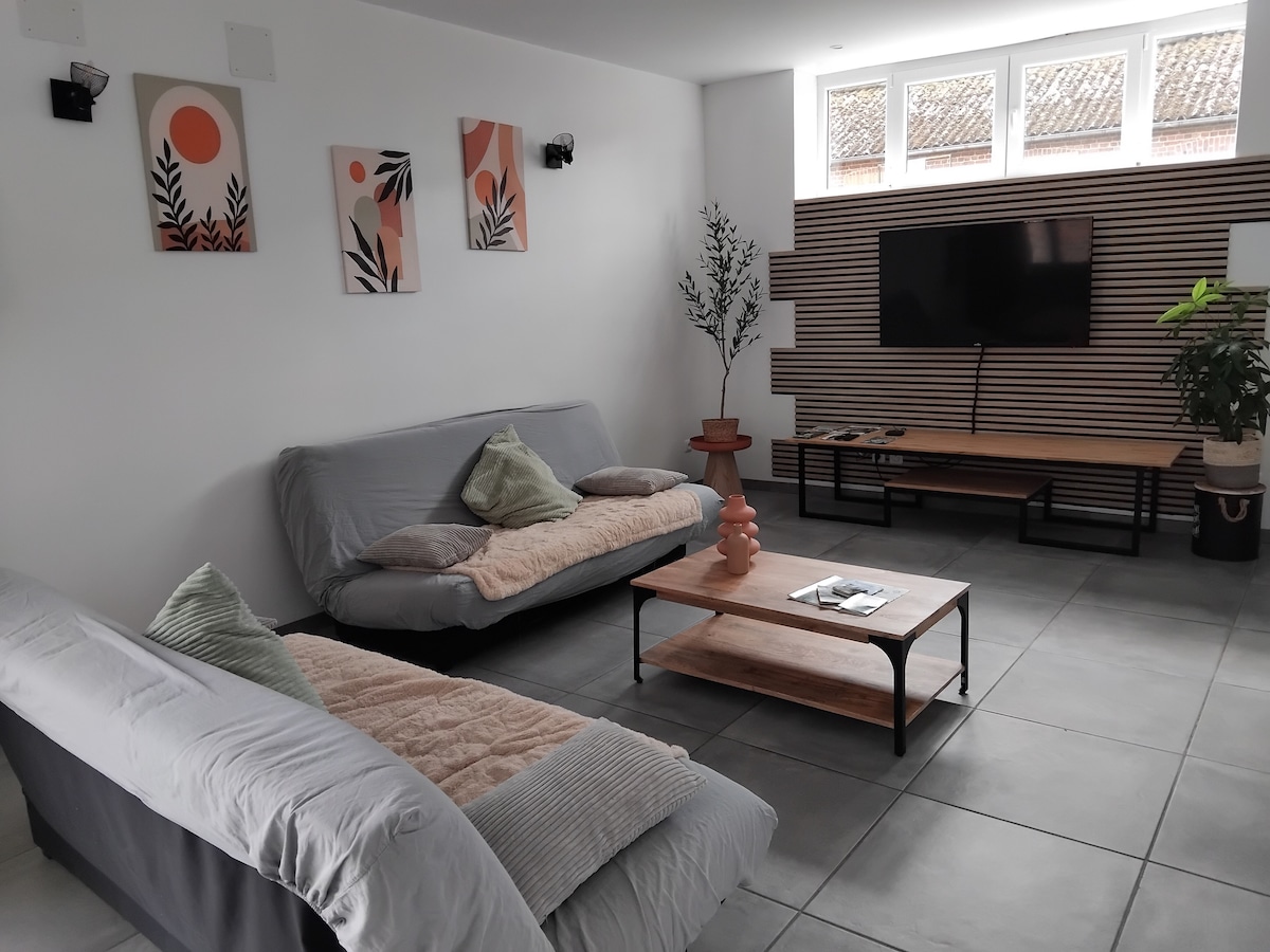 Venez vous détendre dans ce logement calme et élégant, situé dans une ancienne ferme-brasserie datant de 1778, entièrement rénovée avec soin. 📍 Situation idéale : • 10 min de Valenciennes et du Quesnoy (site Refresco) • 20 min de Cambrai • 10 min de Solesmes 🏡 Le logement : Refait à neuf, il se compose d’un espace cuisine-séjour chaleureux et d’une chambre équipée d’un lit simple 90x190. Salle de bain avec douche Télévision écran plat 80cm. 🚗 Stationnement : Parking privé et gratuit