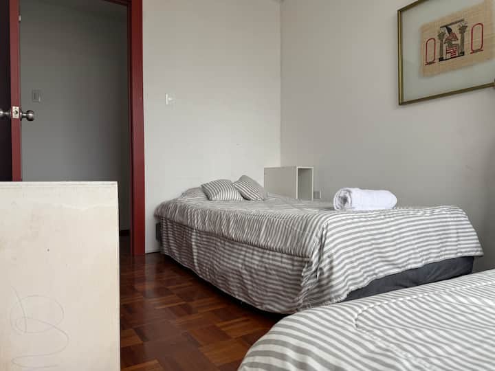 Une chambre privée dans un logement, incluant l'accès aux espaces partagés.