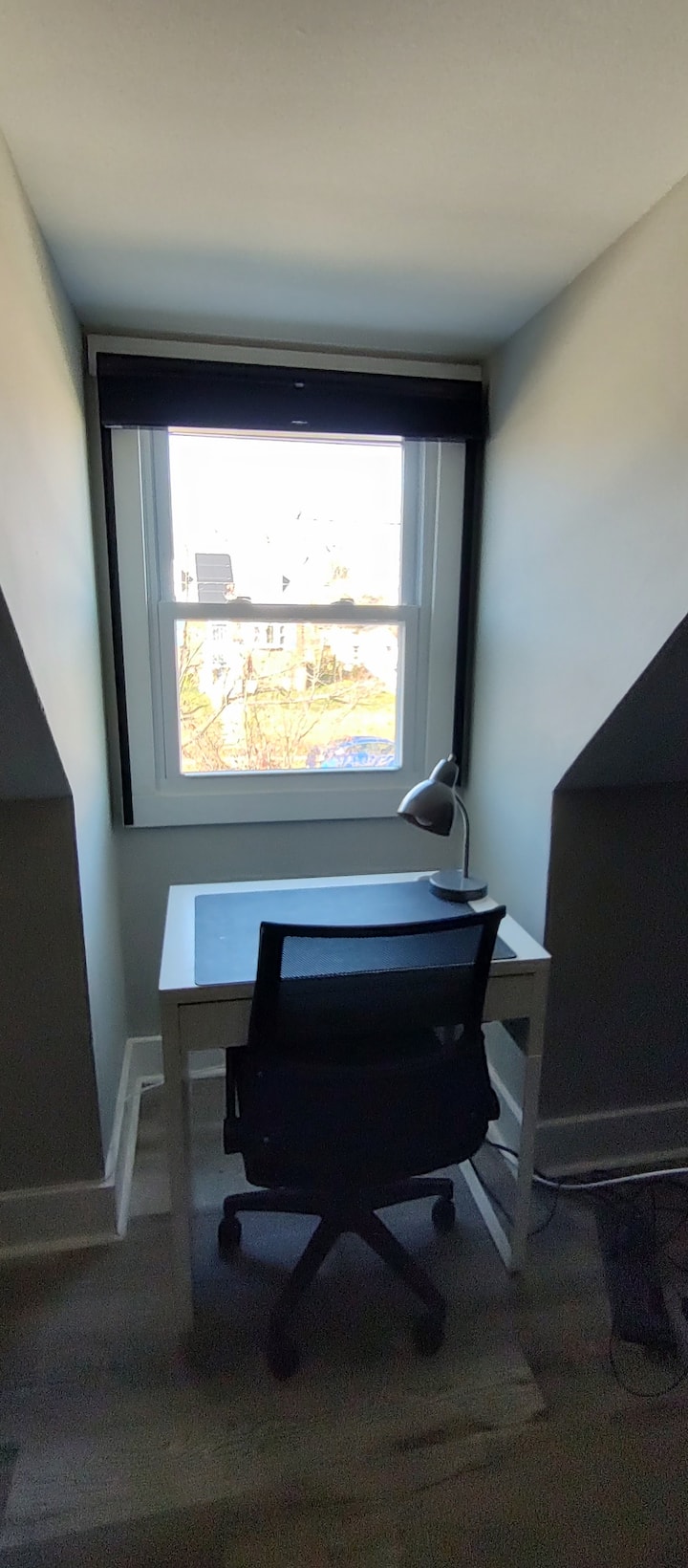 Belle chambre privée avec beaucoup d'équipements pour votre plaisir, y compris des rideaux occultants. Micro-ondes et mini-réfrigérateur dans la chambre, et un espace de travail dédié.