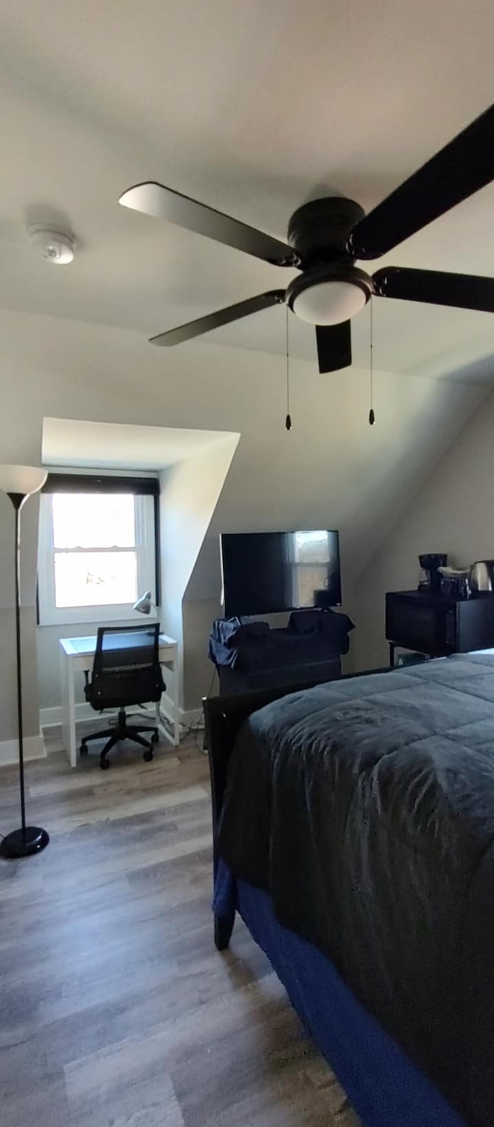 Chambre privée avec un très grand lit Queen Size ! Chambre et salle de bain récemment rénovées dans un excellent emplacement à environ un mile de la station de métro ! Profitez de beaucoup d'intimité : il n'y a pas de chambre à côté de vous et la maison est bien isolée contre le bruit ! Le mur de la douche est à l'extérieur de la maison, donc vous n'entendrez pas cela non plus quand je prends une douche ! Beaucoup de commodités, y compris des rideaux occultants, un espace de travail dédié, un micro-ondes et un mini-réfrigérateur, une cafetière et une bouilloire, des tables de chevet pour charger et plus encore !