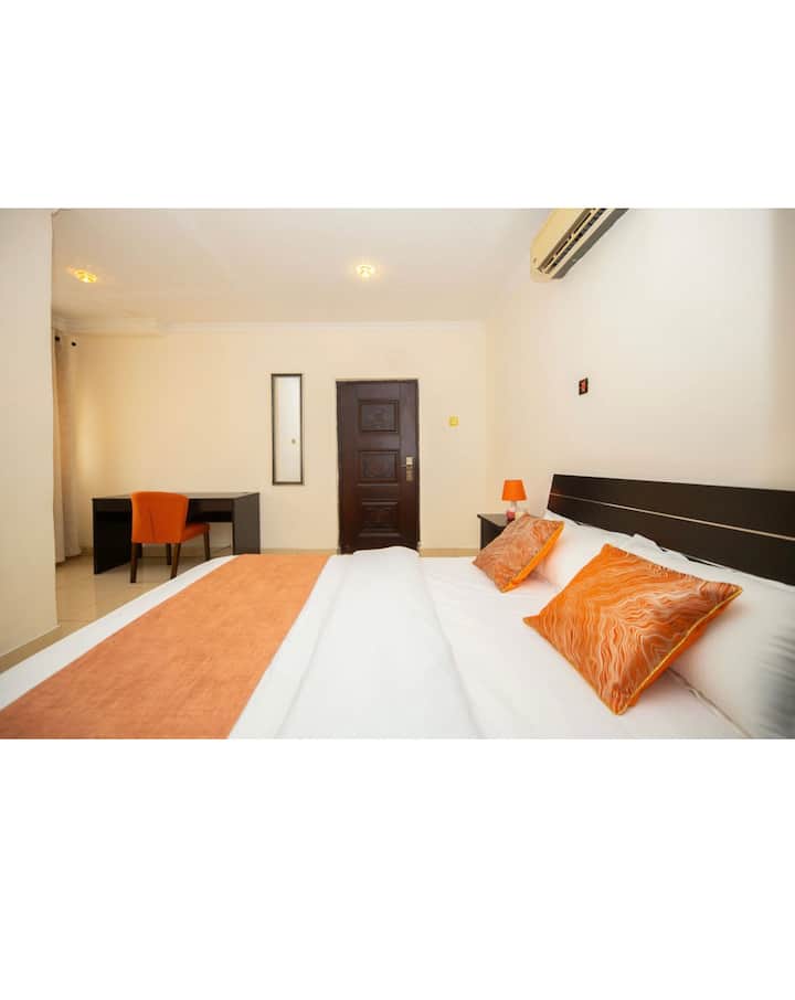 1 chambre confortable avec thème orange
