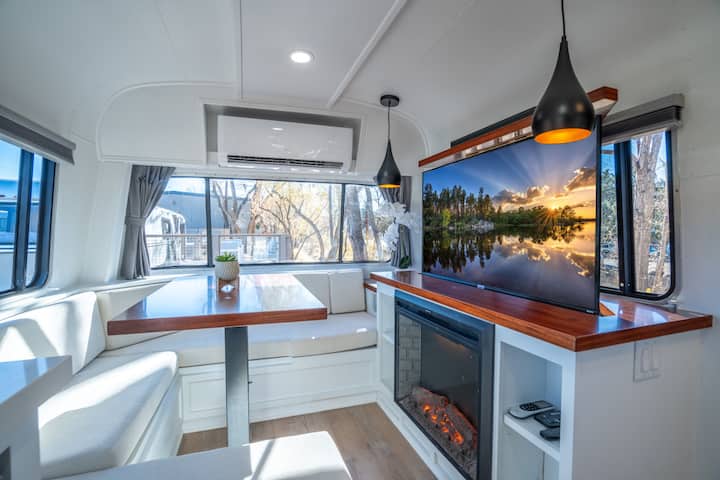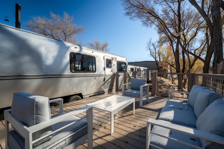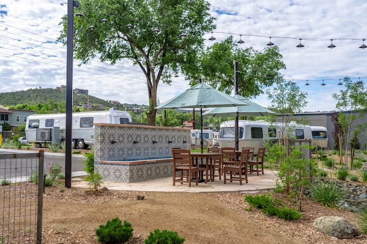 Découvrez le luxe dans le centre-ville de Prescott, Arizona ! Notre caravane Avion de 34'est une oasis moderne, entièrement rénovée pour le confort. Niché dans une propriété avec des foyers communs, des pelouses et une salle à manger extérieure près d'une fontaine tranquille. Découvrez le mélange parfait de style et de détente au cœur de Prescott ! Air Village est une entreprise familiale. Nous nous efforçons de vous faire vivre une expérience 5 étoiles !