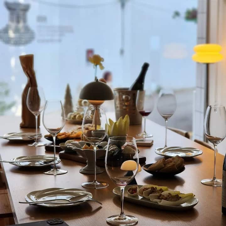 Partie à une table/Réunion/Séminaire/Vin/Espace de cuisine partagé au centre de Hannam-dong