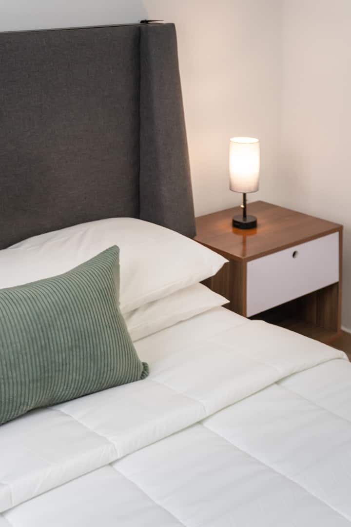 Une chambre avec wifi bien aménagée pour travailler.