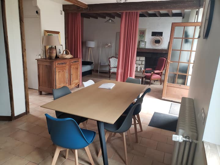 Les deux gîtes peuvent être communicables pour un rassemblement de famille, (côté Jardin + côté cour).