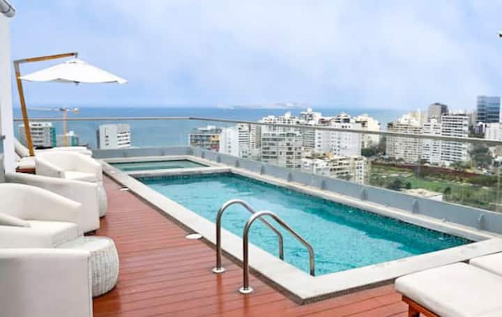 1 ch. vue sur mer Barranco garage piscine jacuzzi climatisation WIFI