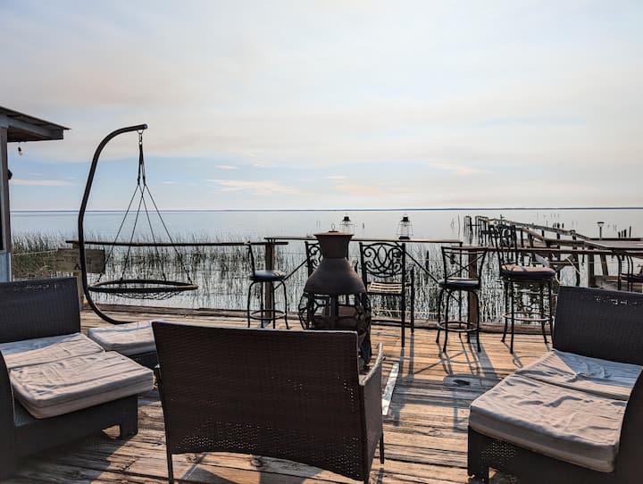 La propriété est située sur un lac naturel de 46 000 acres qui est relié à l'océan Atlantique par la rivière St Johns. Cet endroit offre un refuge faunique abondant. Cela peut être passionnant, mais dangereux. Merci de ne pas nourrir ou approcher la faune. Vous pouvez voir des alligators, serpents, loutres, lamantins, ainsi que plusieurs espèces de poissons et d'oiseaux, y compris, mais sans s'y limiter, les pygargues à tête blanche américaine, les aigrettes, hérons, mouettes, achigan, mulet, crappie, bluegill et plus encore. Veuillez simplement faire preuve de prudence et ne pas essayer de déranger les animaux ou leur environnement.