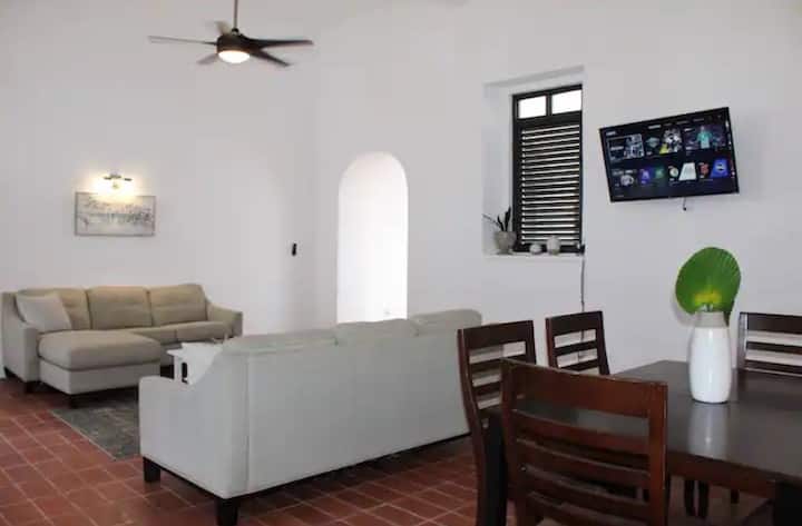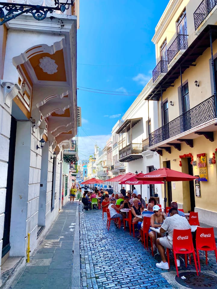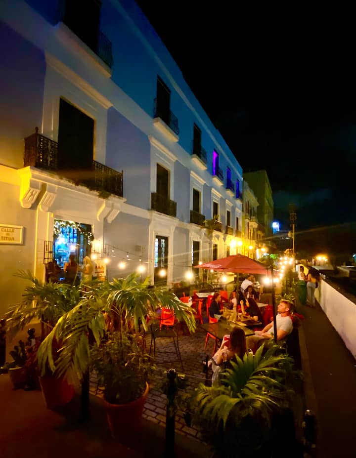 Nous sommes situés en plein cœur du vieux San Juan. Juste à côté du célèbre Parque de las Palomas (Pigeon Park) et de La Fortaleza (Governor 's Mansion), au milieu des restaurants et des boutiques. Le Monastery Club est un boutique-hôtel de 9 chambres. Les espaces communs comprennent la salle de bal, le toit et le balcon donnant sur la rue principale et les restaurants à l'avant. Notre propriété sœur est juste en face ; #251. Il dispose de 2 appartements de grande taille entièrement équipés et spacieux ; un par étage.