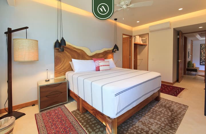 découvrez l'attrait de V-Estrella, un luxueux appartement d'une chambre avec un mobilier moderne parfaitement situé au cœur de la zone romantique de Puerto Vallarta. Cette unité exquise dispose d'une chambre principale avec un lit king-size et une grande salle de bains privative, d'un dressing, d'une terrasse privée entourée de plantations luxuriantes, de la climatisation, d'une cuisine entièrement équipée, d'une buanderie, d'une connexion Wi-Fi rapide et d'une télévision connectée.
