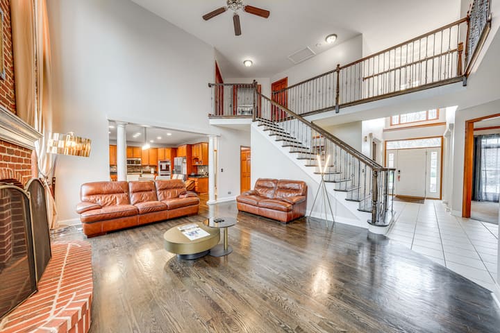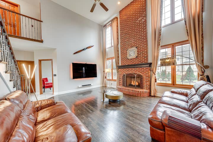 Évadez-vous dans la banlieue de Chicago dans cette location de vacances à Naperville. La maison de 5 lits et 4 salles de bain s'étend sur 3 500 pieds carrés, de sorte que votre famille aura suffisamment d'espace pour passer du bon temps ou se détendre indépendamment. Munch sur du maïs soufflé et regardez vos plats préférés au home cinéma, affrontez-vous à la table de ping-pong pour une compétition amicale et préparez des repas alléchants dans la cuisine gastronomique. N'oubliez pas de visiter le Naperville Riverwalk et le DuPage Children 's Museum, chacun à moins de 10 milles.