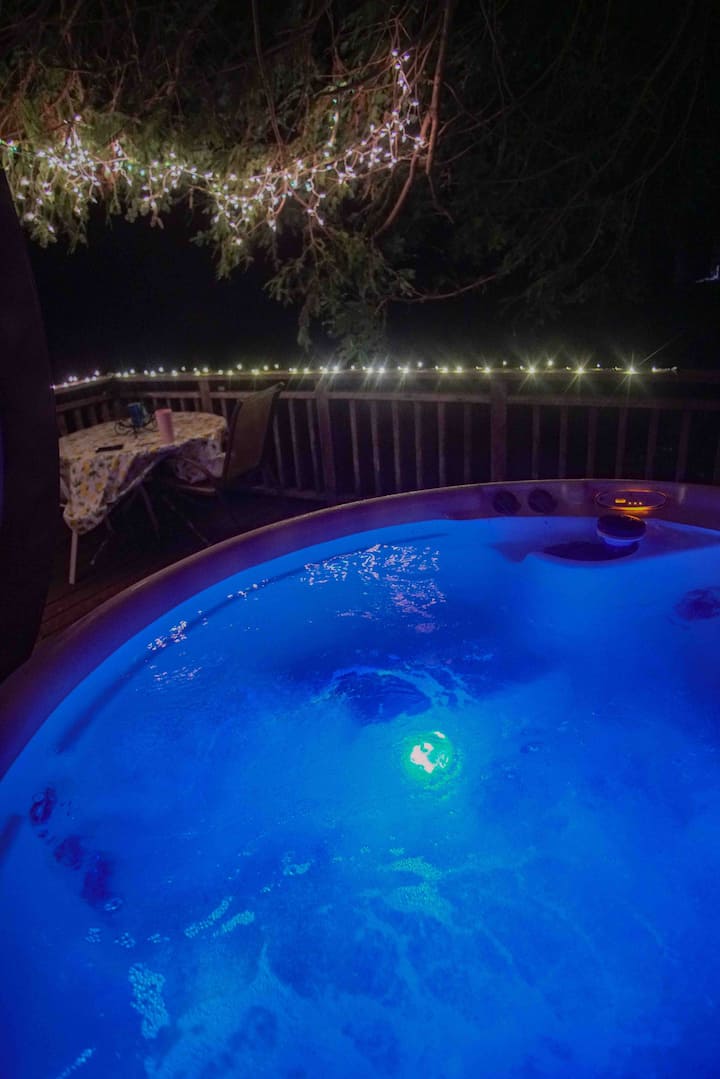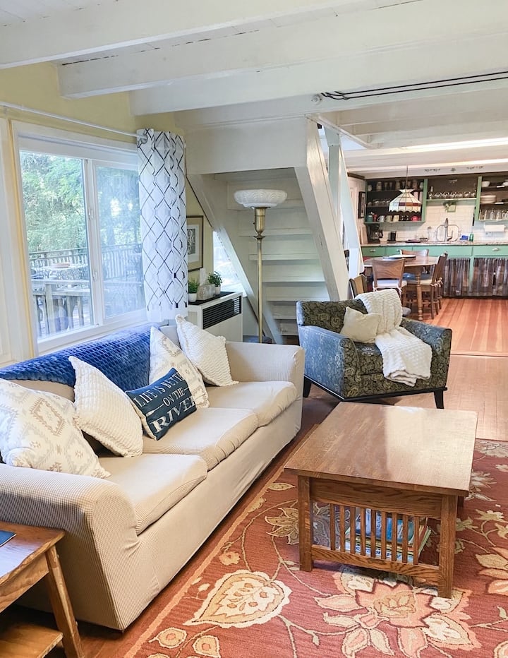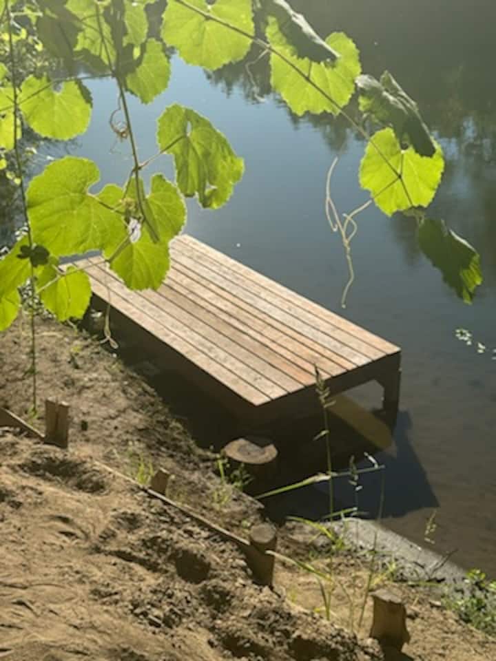 Retraite au bord de la rivière avec quai, spa sur une immense terrasse